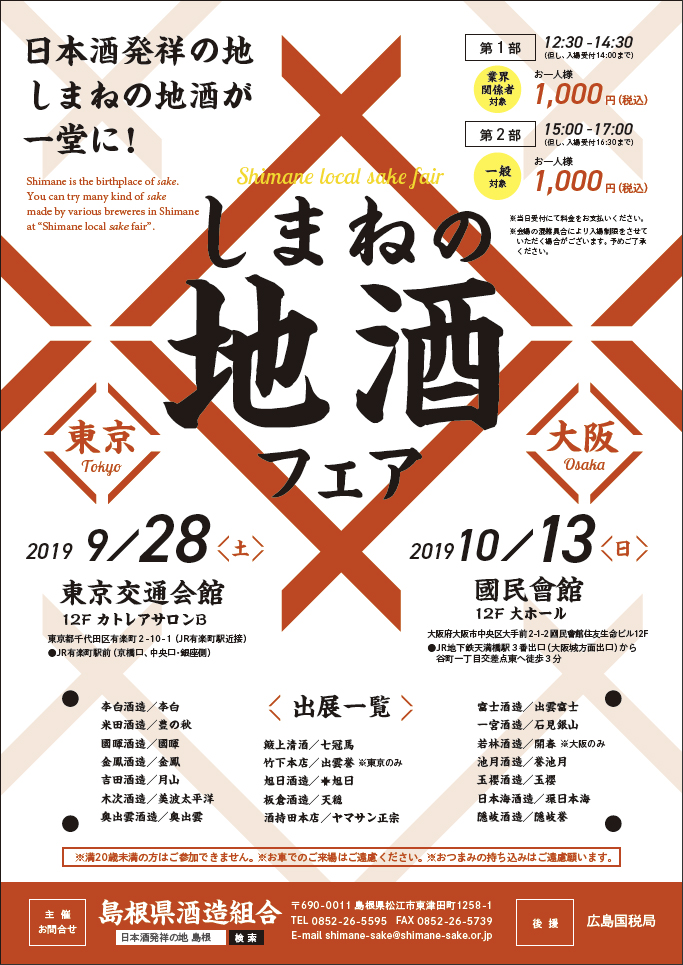 今年も以下の日程で「しまねの地酒フェア」が開催されます。